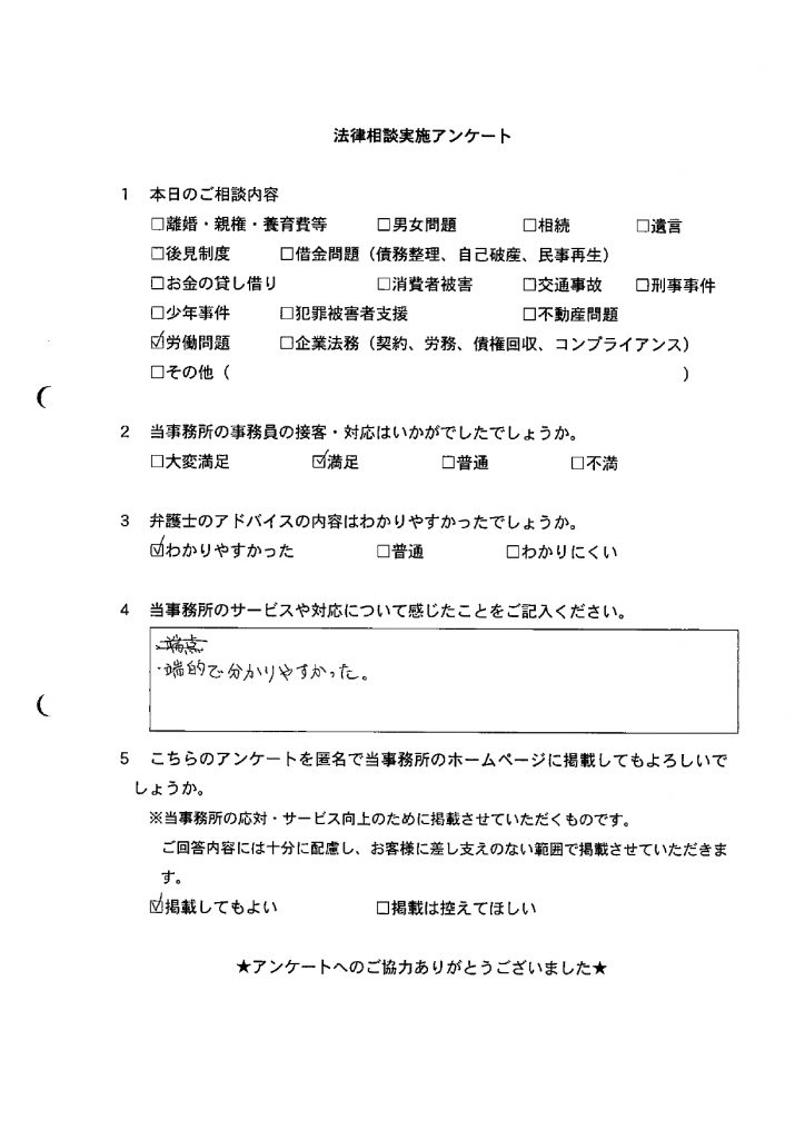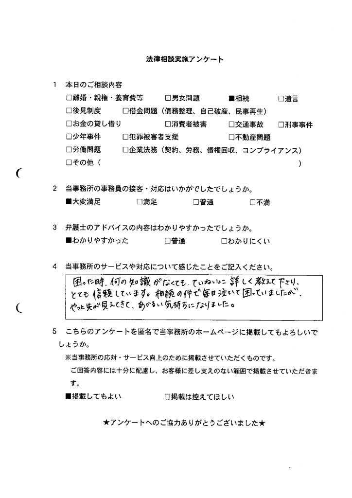 弊所では、相談に来られたお客様の満足度調査を実施し、内容を各弁護士や事務職員の業務改善に活かしています。